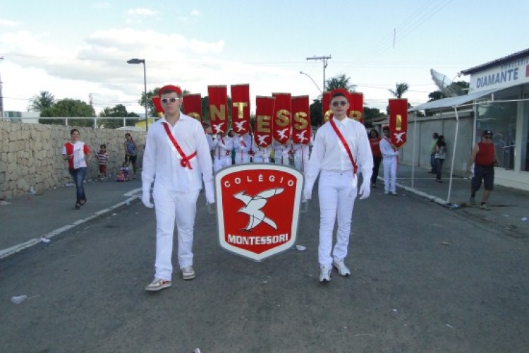O Colégio Montessori abriu seu desfile com a Banda Mirim, que prestou uma linda homenagem de apoio e oração ao Cabo Barbosa, seu criador, cuja presença se fez sentir na alegria dos seus músicos mirins.